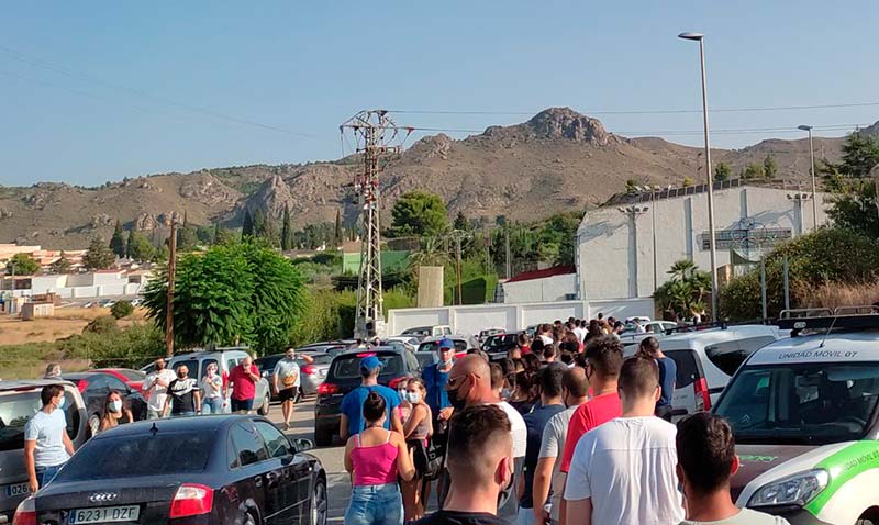 Ya desde primera hora se fueron formando largas colas en la entrada e inmediaciones del polideportivo que originaron esperas imprevistas que fueron motivadas, principalmente (según fuentes consultadas), debido a personas que no respetaron su horario de vacunación y acudieron a la cita bastante tiempo antes de lo previsto (en unos casos), y a la presencia de jóvenes de 18 y 19 años a quienes aunque inicialmente se les había citado para este día y luego se les había 're-citado' para el 5 de agosto o bien ya no se pudo volver a contactar con ellos para cambiarles la cita, acudieron a vacunarse, lo que demuestra el hecho de que, como nos decía el director de Enfermería del Área IX de Salud, José Francisco García, se acabasen poniendo más vacunas de las previstas. «Teníamos confirmadas a 1.069 personas para vacunar de edades de entre 20 y 29 años y finalmente hemos puesto 1.169 vacunas».