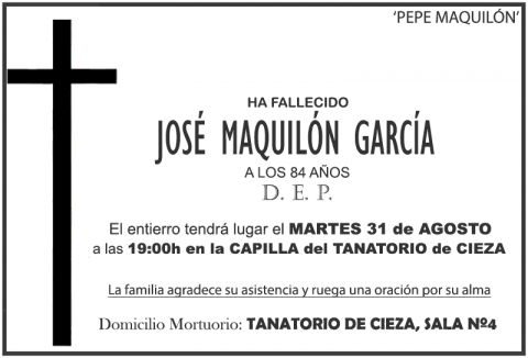 Si desean informar de la muerte de un familiar/amigo/conocido y facilitarnos los datos de sus exequias (hora del entierro, domicilio mortuorio, etc), contacte por WhatsApp en el 615 27 89 22.
