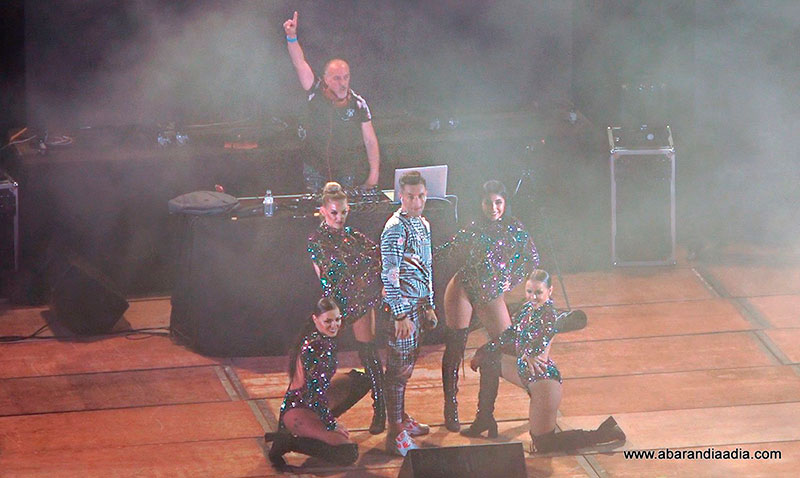Muy bien acompañado en el escenario por cuatro dinámicas bailarinas y un disc Jockey, el cantante puertollanense, que pasó por la cuarta edición de Operación Triunfo, interpretó los éxitos del reggaetón más actual y algunos temas propios con los que cada vez cuenta con un mayor número de seguidores.
