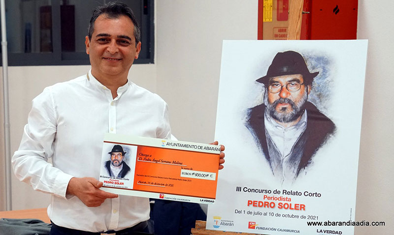 Transcurridos más de tres años desde su fallecimiento, la obra literaria y periodística de Pedro Soler Gómez sigue candente en la Región de Murcia. Las instalaciones de la Biblioteca Municipal 'José Vargas' de Abarán (edificio CIMA), acogieron este martes el acto de entrega de premios del 'III Concurso de Relato Corto Periodista Pedro Soler', cuyo ganador ha sido Pedro Ángel Serrano Molina, natural de Puente Tocinos (Murcia), con la obra titulada 'La vela', una historia sobre cómo la Covid cambió nuestras vidas. El acto estuvo presidido por al Alcalde de Abarán, Jesús Gómez; el concejal de Cultura, Felipe García; la representante de la Fundación Cajamurcia, Cristina Abellán; y el jefe del Área de Cultura del diario La Verdad, Manuel Madrid. También asistieron, entre otros, el creador del cartel de este año, el pintor murciano Paco Cánovas, miembros del jurado, y una amplia representación de familiares y amigos de Pedro Soler.