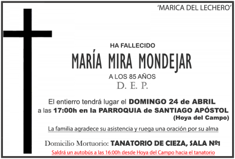 Si desean informar de la muerte de un familiar/amigo/conocido y facilitarnos los datos de sus exequias (hora del entierro, domicilio mortuorio, etc), contacte por WhatsApp en el 615 27 89 22.