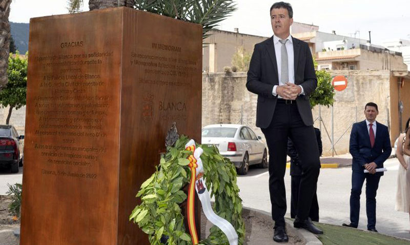 El Ayuntamiento de Blanca llevó a cabo este domingo un emotivo acto de homenaje a las víctimas de la Covid-19 y de reconocimiento a distintos colectivos por sus actuaciones en la pandemia y la durante la última DANA.