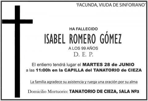 Si desean informar de la muerte de un familiar/amigo/conocido y facilitarnos los datos de sus exequias (hora del entierro, domicilio mortuorio, etc), contacte por WhatsApp en el 615 27 89 22.