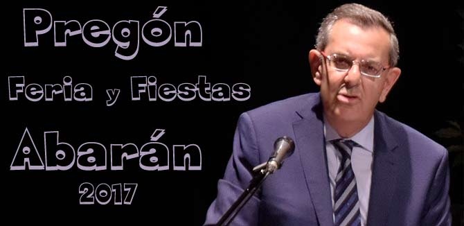 El pregonero 2017, tras destacar la importancia que siempre ha tenido Abarán en la agricultura, economía, cultura, gastronomía y religiosidad, glosó la figura de los santos patronos y recordó sus años de infancia y juventud. «Para un niño aprisionado en la gran urbe Abarán significaba recobrar la libertad, desprenderse del horario encorsetado del invierno, vivir la anarquía del  espacio y romper con la esclavitud del tiempo», expresó.