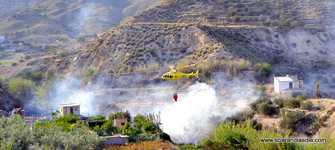 Tras recibirse en la centralita de la Policía Local de Abarán varias llamadas de vecinos de la Barriada Virgen del Oro que informaban de un incendio de cañas y matorral en la zona conocida como ‘Barranco del Jacintón’, los agentes solicitaron la intervención de efectivos del Plan Infomur al confirmar que el fuego afectaba a una amplia zona de cañas y matorral en una rambla y que las llamas podían extenderse a unas viviendas cercanas, según informó el Centro de Coordinación de Emergencias.