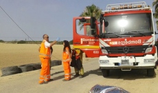A continuación, los delincuentes pretendieron reanudar su marcha, pero se encontraron con un furgón que cargaba escombro de una obra que se está realizando en la calle Médico Gómez esquina con Luís Carrasco, lo que les cortó el paso. Tras verse atrapados, este contratiempo obligó a los malhechores a volver sobre sus pasos y, tras dar la vuelta en el pequeño callejón de la calle Los Santos, huyeron en sentido contrario por la propia calle Médico Gómez hasta enlazar con Dr. Molina, donde se les perdió la pista.
