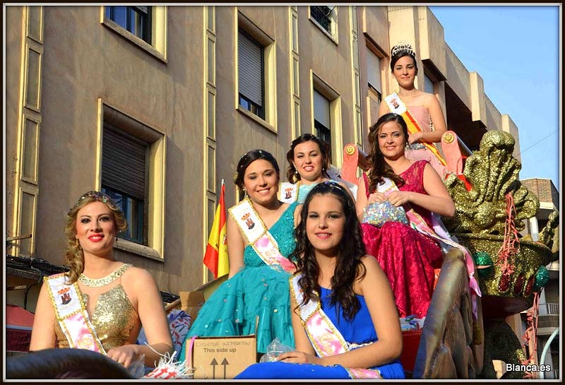 La charanga ‘Los Informales’, de Blanca, pusieron el tono festivo animando la carroza en la que se dejaron ver las guapísimas y elegantes reinas de las fiestas y a su corte de damas de honor que cerraron la comitiva. Tampoco faltó la carroza de la Asociación de Mujeres de Blanca y la de la Residencia de Ancianos, que animaron el desfile de una manera muy especial.