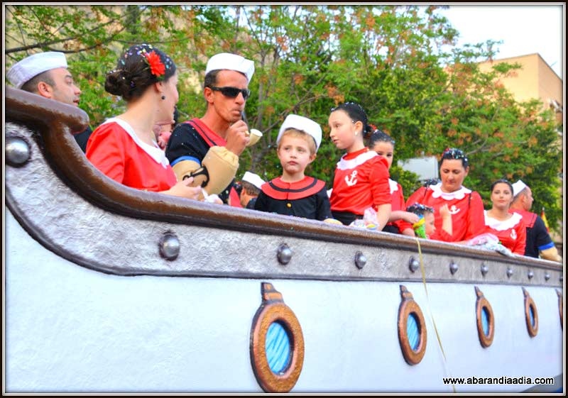Más de ocho mil personas, según fuentes de la organización, se citaron en este gran espectáculo de carrozas, comparsas y charangas. Un total de ocho carrozas, incluida la de la Reina de las Fiestas, que cerró la comitiva, pusieron la nota de color y humor al desfile.