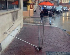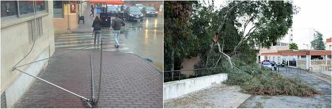Entre las incidencias de mayor relevancia se encontró la caída sobre la vía pública de parte de lo que parecía ser el soporte de una antena de televisión o similar. El elemento metálico, de varios metros de longitud, cayó sobre una acera muy transitada de la plaza de la Zarzuela, en pleno centro del municipio, con la suerte de que en esos momentos no pasaba por el lugar ningún viandante.