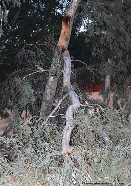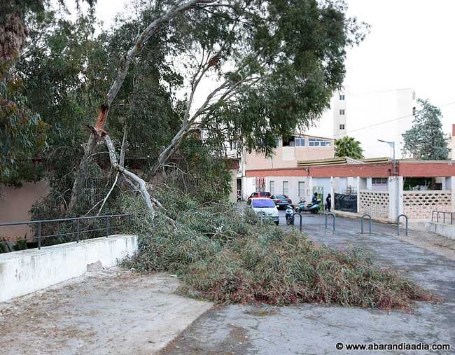 La lluvia y las fuertes rachas de viento que se dejaron sentir este domingo en Abarán provocaron diferentes incidentes relacionados con desprendimientos, caída de objetos, daños en arbolado y tendido eléctrico, aunque, por fortuna, solo ocasionaron pequeños daños materiales de poco importancia.