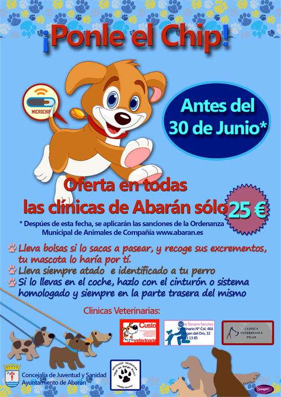 A partir de ese día aquellos dueños que no cumplan con esta obligación serán sancionados económicamente según marca la ordenanza municipal. Las clínicas veterinarias de la localidad están colaborando con esta iniciativa y ofertan una promoción especial a solo 25 euros/chip, algo que, en algunos casos, puede llegar a costar hasta 45€.