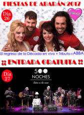 Dentro de las actuaciones musicales que llenarán, un año más, el escenario del Parque Municipal de Abarán podremos deleitarnos con el arte de nuestros paisanos Darío Gómez y Antonio Hernández (El Turro), y su renovado espectáculo '500 noches. Sabina en las venas'. Además, otros que vuelven y que, seguro, serán bienvenidos, son 'La Década', con los grandes éxitos de los años 60, 70, 80 y 90, en una velada con tributo a Abba incluido.