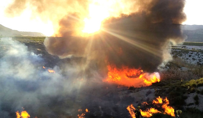 Numerosos efectivos adscritos al Plan Infomur, de lucha contra los incendios forestales en la Región de Murcia, trabajaron este miércoles en la extinción de un fuego declarado en el municipio de Ojos, en una zona situada por debajo del pantano del Mayes en el paraje del Aire, unas labores que se alargaron durante más de 11 horas ya que no fue hasta la madrugada del jueves cuando el incendio se dio por extinguido.