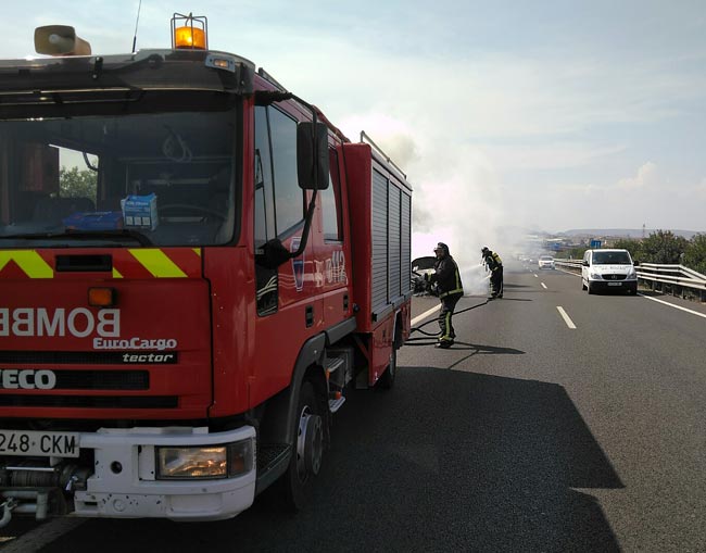 Arde un turismo cuando circulaba por la A-30 en el cruce de Blanca