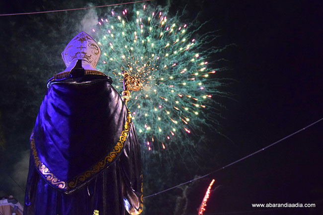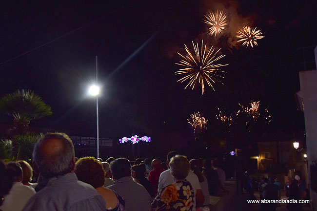 Cientos de coches tuvieron que aparcar en la carretera de Blanca a Ojós y en la de Ricote, y cualquier sitio era bueno para ver la demostración pirotécnica organizada por la Peña Cohetera de Ojós que preside Pablo Antonio González y el lanzamiento del castillo de fuegos artificiales a cargo de la empresa Pibierzo, que duró treinta y cinco minutos y constituyó todo un espectáculo de luz, color y sonido digno de admiración y asombro. Más de doce mil cohetes sufragados por todos los vecinos iluminaron el cielo.