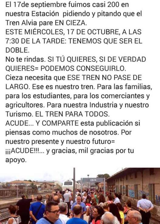 Concentración para pedir que el tren a Madrid tenga parada en Cieza
