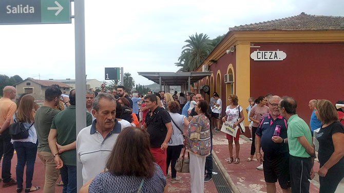 Los vecinos reunidos en la Estación de Cieza habían acudido hasta allí a través de un llamamiento espontáneo lanzado a través de las redes sociales.