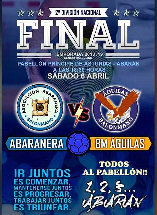 El equipo sénior masculino de la Asociación Abaranera de Balonmano -que sigue imbatido en esta temporada-, ha conseguido un gran resultado en el encuentro de ida de la final por el título regional en 2ª División Nacional que se ha disputado esta tarde en el Pabellón Polideportivo 'Agustín Muñoz' de Águilas. Empate a 17 en un partido de pocos goles en el que las defensas se han impuesto a las líneas de ataque. Todo se decidirá la semana que viene en Abarán, donde el apoyo de la afición local deberá ser, una vez más, un factor determinante para que la victoria, y con ella el título de campeón, se quede en casa.