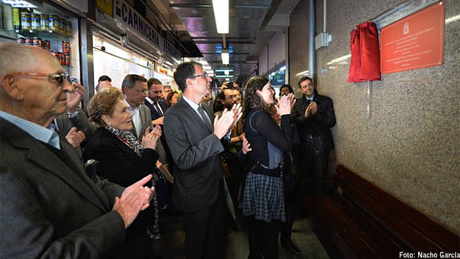 Así, si tienen la oportunidad de pasar por Murcia y acercarse por el Mercado de Verónicas, podrán ver 'su banco', y sobre él, grabado en una placa, leer este contenido: