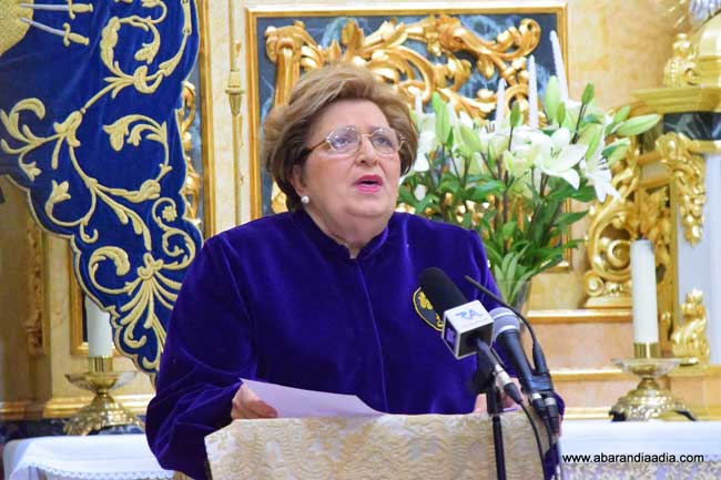 Con una brillante intervención repleta de recuerdos, vivencias, anécdotas y curiosidades, Marta Amorós Carrillo pregonó este domingo la Semana Santa de Abarán 2019. Y lo hizo con un tono muy familiar y con la cercanía y sencillez que le caracteriza, volviendo la vista atrás para rememorar la Semana Santa de épocas pasadas y la de los años más recientes.