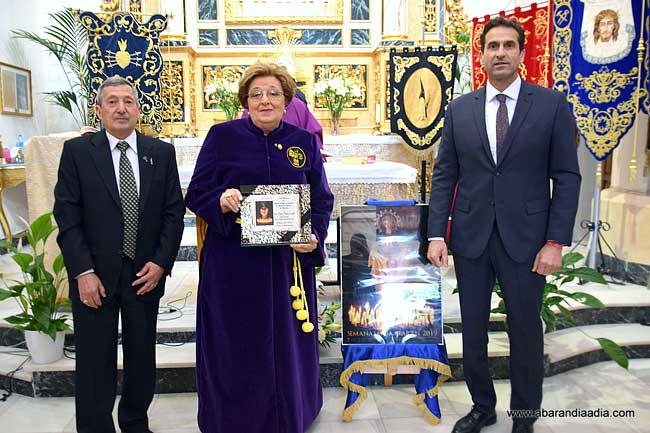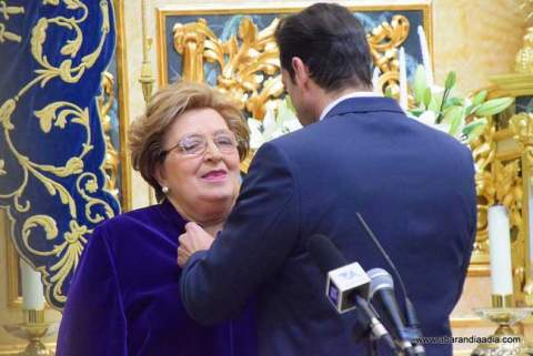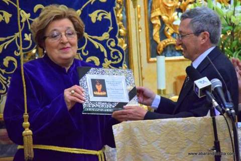 Finalmente, de manos del presidente de la Junta de Hermandades y de nuestro alcalde, recibió un recuerdo de este día y las condecoraciones características de este evento: el nazareno y el escudo de Abarán.