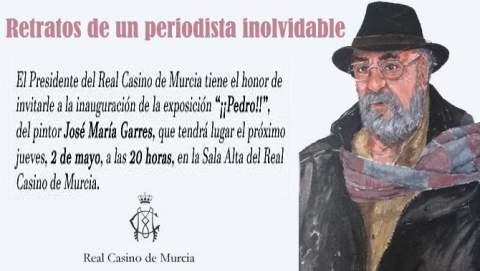El pintor José María Garres, natural de Molina de Segura, presenta en el Real Casino de Murcia una exposición de retratos de Pedro Soler «cuya ausencia dejó afligida la cultura y el periodismo de Murcia». La muestra lleva por título “¡¡Pedro!!” y se podrá ver en la Sala Alta de la entidad hasta el 31 del mismo mes.