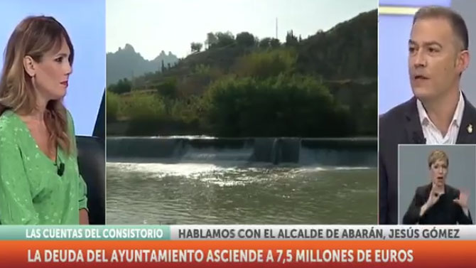 El Alcalde de Abarán, el socialista Jesús Gómez, pasó en la mañana de este lunes por el plató de informativos de la televisión regional 7 Región de Murcia donde, en directo, fue entrevistado por la periodista Marienca Fernández.