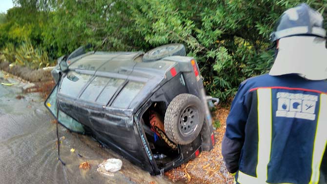 Una joven de 24 años resultó herida este jueves tras perder el control del vehículo en el que viajaba y volcar. El suceso ocurrió poco antes de las ocho de la mañana en la carretera comarcal B-19, a la altura del kilómetro 5, en el término municipal de Cieza. El coche, un todoterreno, se salió de la calzada, por causas que se desconocen, y chocó contra una tubería de agua.