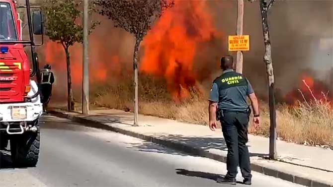 Más de una treinta de llamadas se recibieron en el Centro de Coordinación de Emergencias 1-1-2 alertando del incendio, indicando que el viento reinante en la zona lo extendía rápidamente hacia la gasolinera.