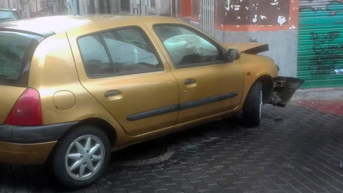 Agentes de la Policía Local de Abarán han asistido este jueves al conductor de un turismo que, tras hacer un giro a la izquierda desde la calle Médico Gómez, ha acabado empotrado contra la esquina de un comercio de la calle Luís Carrasco.