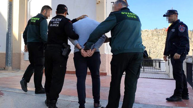 La Guardia Civil de Blanca ha logrado detener al presunto autor de un robo con violencia sufrido por una vecina de ese municipio a la que, tras sorprenderla por la espalda cuando caminaba sola por la calle San Basilio, agarró por el pelo y le propinó un fuerte golpe en el cuello, todo con el propósito de arrebatarle un bolso. El asaltante, que a continuación emprendió una rápida huída, iba encapuchado intentando así ocultar su identidad.