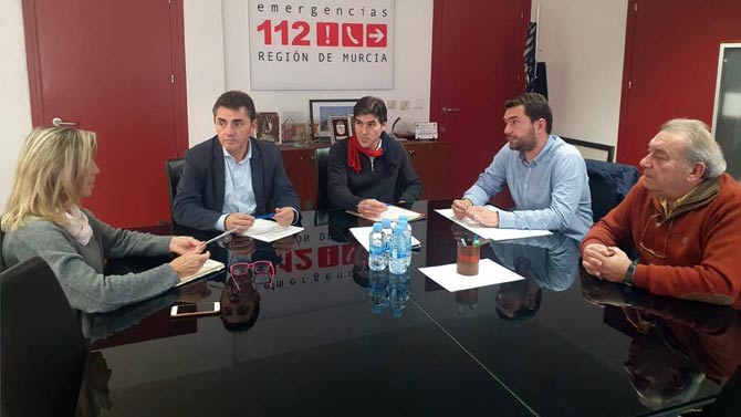 El concejal de Seguridad Ciudadana del Ayuntamiento de Abarán, José Ignacio Carrillo, acompañado por el coordinador de la Agrupación Local de Protección Civil, Bartolomé Ríos, mantuvieron este jueves una reunión con el director general de Seguridad Ciudadana y Emergencias, Antonio Luis Mula, la jefa del servicio de Protección Civil en la Región de Murcia, María Fernanda Arbaizar, y el responsable del servicio de Coordinación de Policías Locales, Alfonso Ayuso.