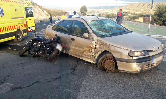 Efectivos sanitarios atendieron y trasladaron al Hospital de la Vega 'Lorenzo Guirao' a un motorista que resultó herido grave en un accidente de tráfico ocurrido a primera hora de la mañana de este miércoles en la antigua carretera Nacional 301, a la altura del cruce de 'La Serrana', en el término municipal de Cieza, según informó el Centro de Coordinación de Emergencias del 112.