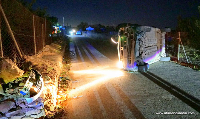 La Policía Local de Abarán intervino este sábado por la tarde en un aparatoso accidente ocurrido en el paraje de ‘Casa Alcántara’ en el que un vecino de la localidad, de mediaba edad, resultó herido, afortunadamente de carácter leve, después de que su vehículo terminara volcado sobre su lateral derecho en una zona de poca visibilidad y en un momento en el que estaba oscureciendo.