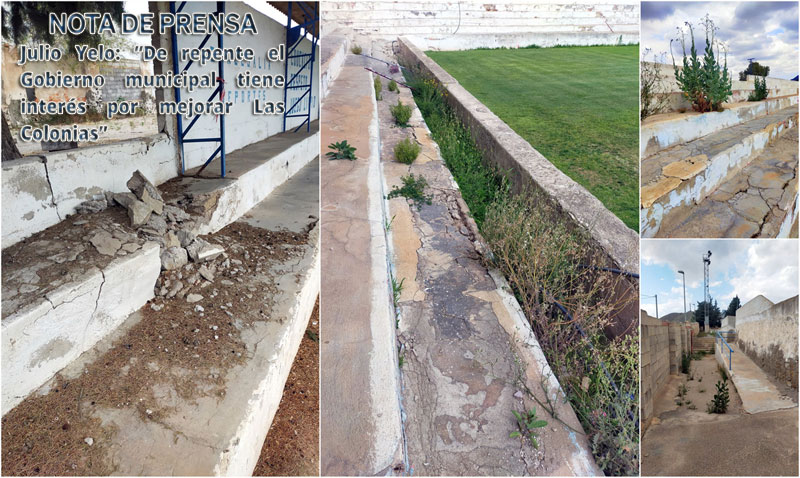 No es algo nuevo, pues incluso se denunció en medios de comunicación, como queda reflejado en el siguiente titular de prensa, en julio de 2021: Réquiem por el histórico Campo de Fútbol Municipal de ‘Las Colonias’ en Abarán cuando ya en ese momento, el estado de Las Colonias era lamentable. como refleja Jesús Yelo en un artículo en el diario La Verdad: 'Las Colonias' de Abarán se cae a pedazos