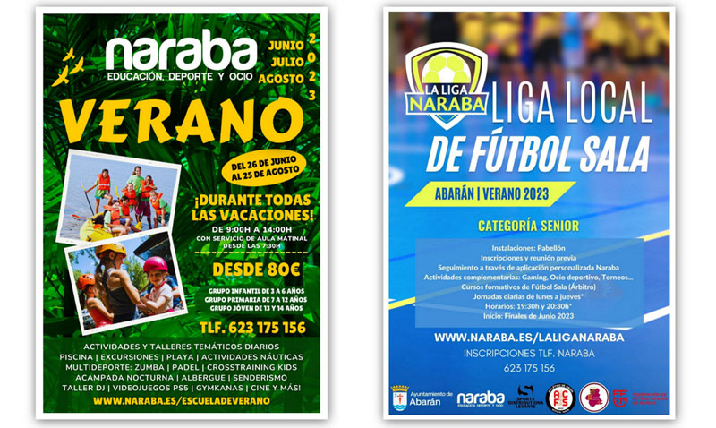 Y en el terreno deportivo, este mes de julio se está disputando la Liga Local de Fútbol Sala de Aficionados, con un formato moderno y apasionante y con encuentros que se disputan entre semana en las instalaciones del Pabellón del Polideportivo de Abarán para la categoría sénior desde el 26 de junio al 28 de julio, en lo que será un anticipo de la próxima Liga de Invierno de Fútbol Sala.