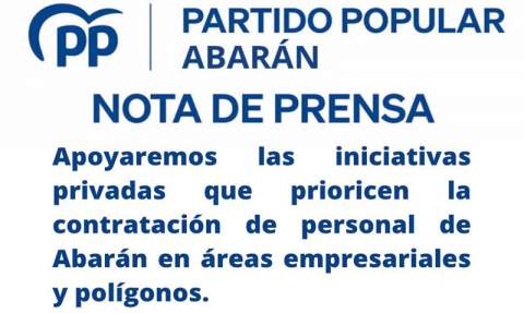 También fomentaremos la industria y el comercio local. Por eso, pondremos en marcha un Programa de Impulso y Apoyo a las Áreas Empresariales; crearemos una Concejalía con competencias específicas para los autónomos, que dinamice y apoye a los comercios de Abarán; así como una incubadora de empresas para facilitar la creación de nuevos modelos de negocio en nuestra localidad, con especial hincapié en los relacionados con tecnologías vinculadas al sector agroalimentario. Además, en el ámbito de la agricultura, pondremos en marcha un programa de apoyo al relevo generacional y a jóvenes agricultores.