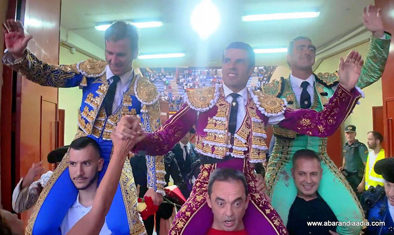 El Fandi, con el que abría plaza, paseaba la primera oreja de la tarde, mientras que Emilio de Justo desataba la locura en los tendidos ante el mejor toro y con la mejor faena de las que se vieron durante el festejo, obteniendo los máximos trofeos de su primer astado (dos orejas y rabo), asegurándose así la puerta grande.