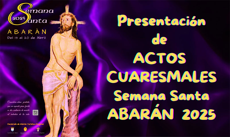 Abarán inició oficialmente los preparativos para su Semana Santa con la presentación de los Actos de Cuaresma 2025, un acto celebrado el pasado viernes y que contó con las intervenciones del presidente de la Junta de Hermandades (JHS), Francisco Javier Tornero, el párroco de San Juan Bautista, Felipe Tomás, la concejala de Cultura, Penélope Luna, el concejal de Tradiciones, Jaime Tornero, y el alcalde, Jesús Gómez.
