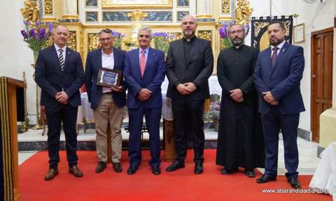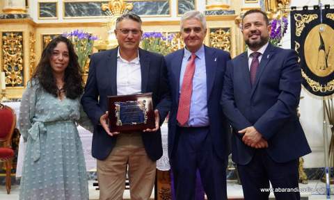 El acto, presentado por Andrés Molina, comenzó con un reconocimiento a una de esas empresas abaraneras que, de manera callada, colabora desinteresadamente con nuestra Semana Santa: Autorrecambios Abarán, que proporciona, desde hace años, las baterías que iluminan los tronos procesionales. Antonio Carrelón, su gerente, recibió el agradecimiento de la Junta de Hermandades.