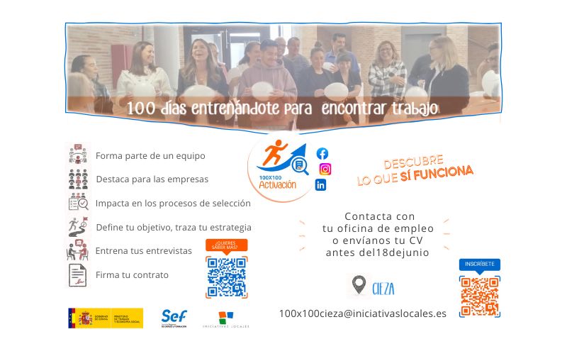 Las personas interesadas pueden inscribirse a través de la oficina de empleo de Cieza o enviar su currículum al correo: 100x100cieza@iniciativaslocales.es