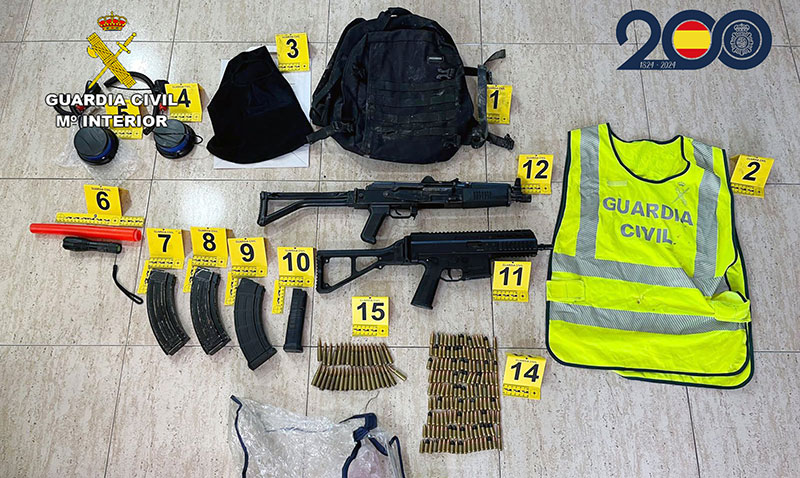 La investigación conjunta ha permitido intervenir un fusil de asalto AK47, un subfusil ACP9, cargadores de armas de guerra, numerosa munición de diferentes calibres, pasamontañas, chalecos policiales, un vehículo de alta gama, marihuana y otros efectos relacionados con los ilícitos investigados.