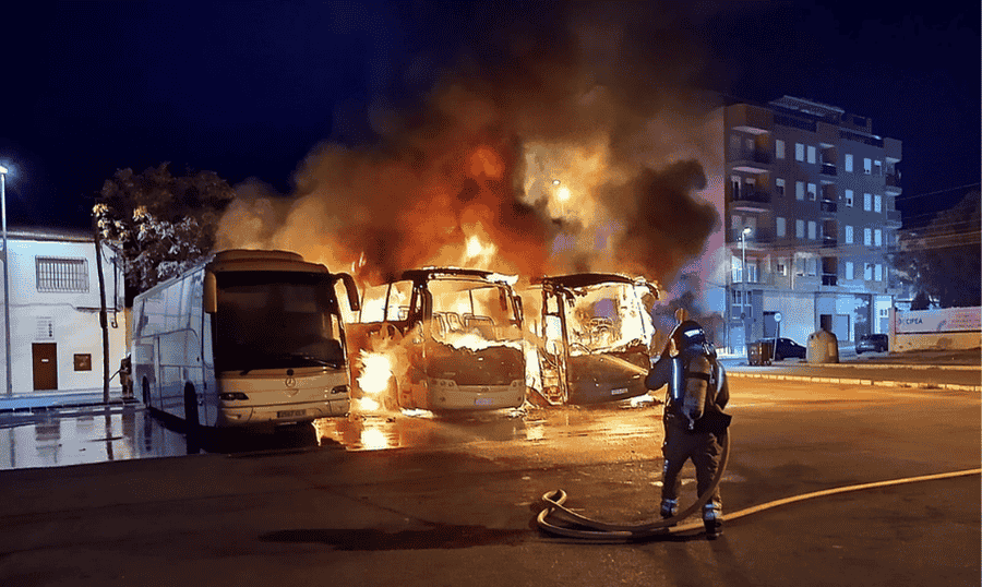 La emergencia se activó a las 06:28 horas, cuando varias llamadas al servicio 1-1-2 alertaron de que las llamas, que habían comenzado en uno de los vehículos, se propagaban con rapidez hacia otros dos autobuses estacionados en la zona.