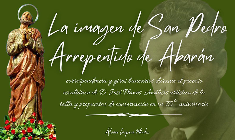 Una de las imágenes que forman parte del patrimonio histórico-artístico de Abarán y, en concreto, de su Semana Santa, ha sido objeto de investigación por parte de nuestro paisano Álvaro Carpena, cuyo resultado ha sido recogido en una ponencia titulada “La imagen de san Pedro arrepentido de Abarán: correspondencia y giros bancarios durante el proceso escultórico de D. José Planes. Análisis artístico de la talla y propuestas de conservación en su 75º aniversario (1950-2025)”, que fue presentada este sábado en un interesante congreso celebrado en Ojós bajo el título “Ojós y el Valle de Ricote: tradición e historia en el Mediterráneo”