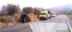 Un joven de Abarán, de 22 años, resultó herido este miércoles, hacia las 13:30 horas, tras sufrir un accidente de tráfico junto a la rotonda situada en la carretera RM-513, frente a las instalaciones de Frutas Esther. El herido, único ocupante del vehículo, un Chevrolet que quedó volcado sobre un lateral, fue trasladado al Hospital de la Vega ‘Lorenzo Guirao’ en Cieza con diversas contusiones, aunque, por fortuna, sin que su estado revistiera gravedad.
