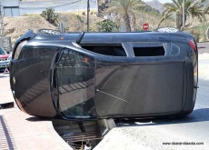 Todo indica que el vehículo accidentado, que se dirigía en dirección a la barriada de San José Artesano, había dejado atrás la rotonda y, por causas que investiga la Guardia Civil de Tráfico, se salió de la vía tras superar el bordillo de una acera existente en la zona, llegando a colisionar contra el vallado de las instalaciones de una empresa de construcción ubicada en ese lugar, lo que terminó provocando el vuelco del turismo, que, como se observa en las imágenes, quedó sobre el lateral del conductor, al que el hecho de llevar correctamente abrochado el cinturón de seguridad, evitó males mayores.