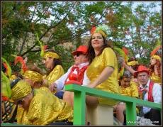 Más de ocho mil personas, según fuentes de la organización, se citaron en este gran espectáculo de carrozas, comparsas y charangas. Un total de ocho carrozas, incluida la de la Reina de las Fiestas, que cerró la comitiva, pusieron la nota de color y humor al desfile.