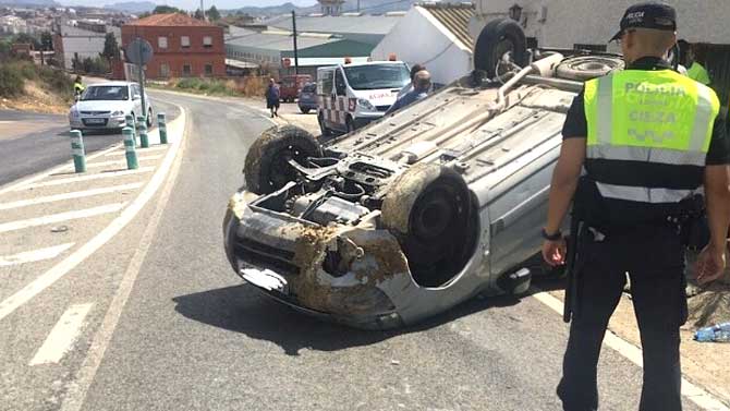 Dos patrullas de la Policía Local de Cieza se han dirigido hasta el lugar para interesarse por lo ocurrido y regular el tráfico en la zona hasta la retirada del vehículo accidentado.
