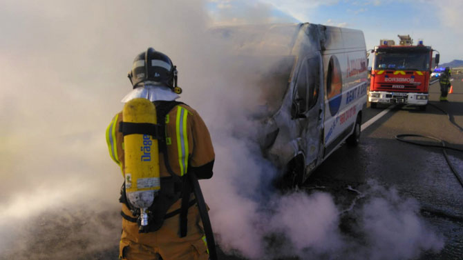 Bomberos del Consorcio de Extinción de Incendios y Salvamento de la Región de Murcia del Parque de Cieza se han movilizado esta tarde para extinguir el incendio en una furgoneta que ha ardido en la autovía A-30 (sentido Murcia), en las proximidades de la salida 97, en el término municipal de Cieza
