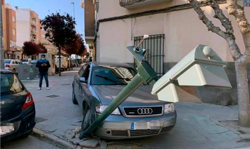 Un semáforo acabó destrozado este miércoles por la tarde en Cieza después de que el conductor de un turismo, que afortunadamente no resultó herido, perdiera el control del vehículo y se empotrara contra la señal luminosa. Según relató el conductor a la Policía, que dio negativo en la prueba de alcoholemia, los frenos no le respondían y, para evitar chocar contra otro vehículo, realizó un giró hasta acabar impactando contra el semáforo.